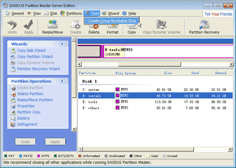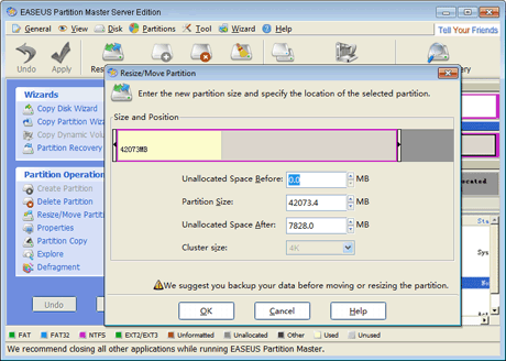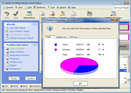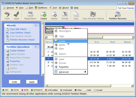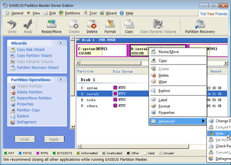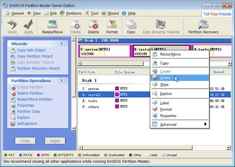 EASEUS Partition Master Server Edition is comprehensive hard disk partition management software to resize and move partitions, create, delete and format partitions, hide and unhide partitions and much more. It is for partition management.